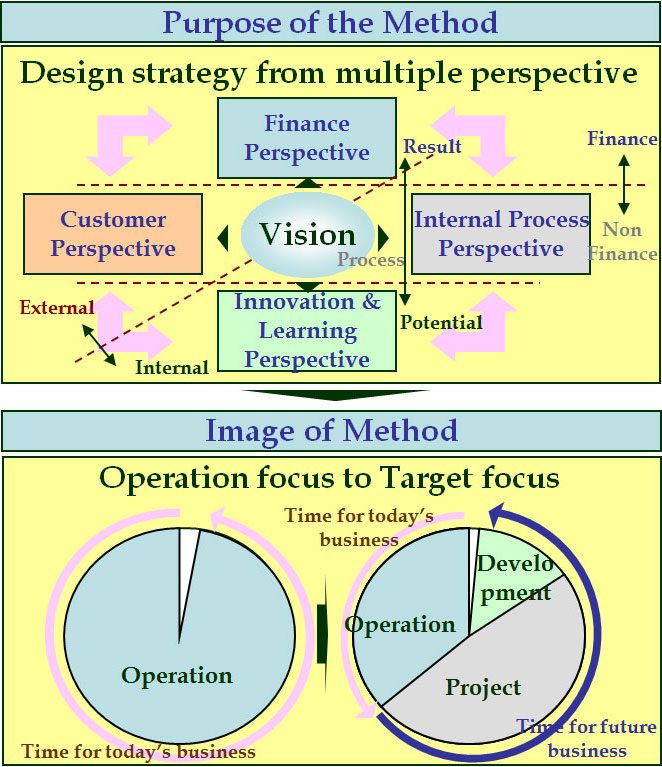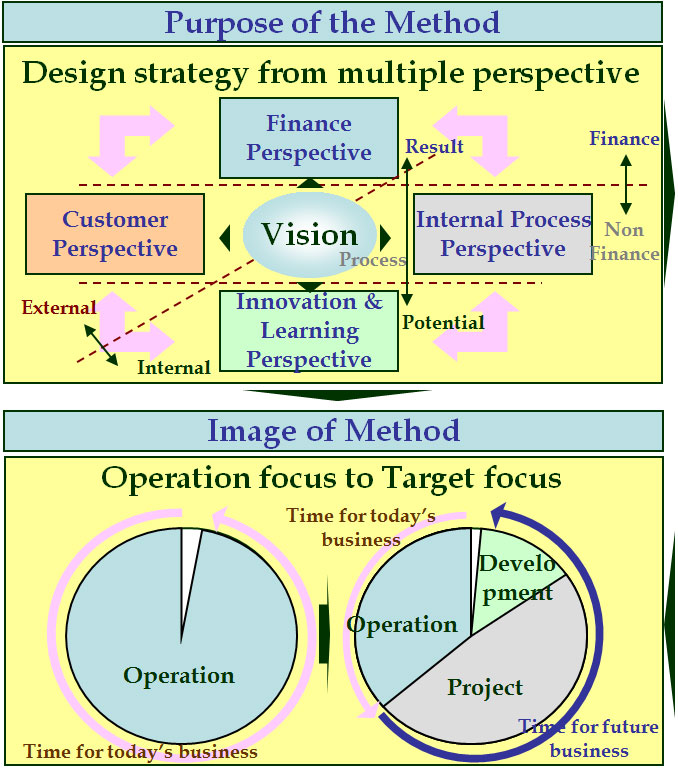 BSC is the method to be used to design strategy with satisfying various stakeholders point of view.